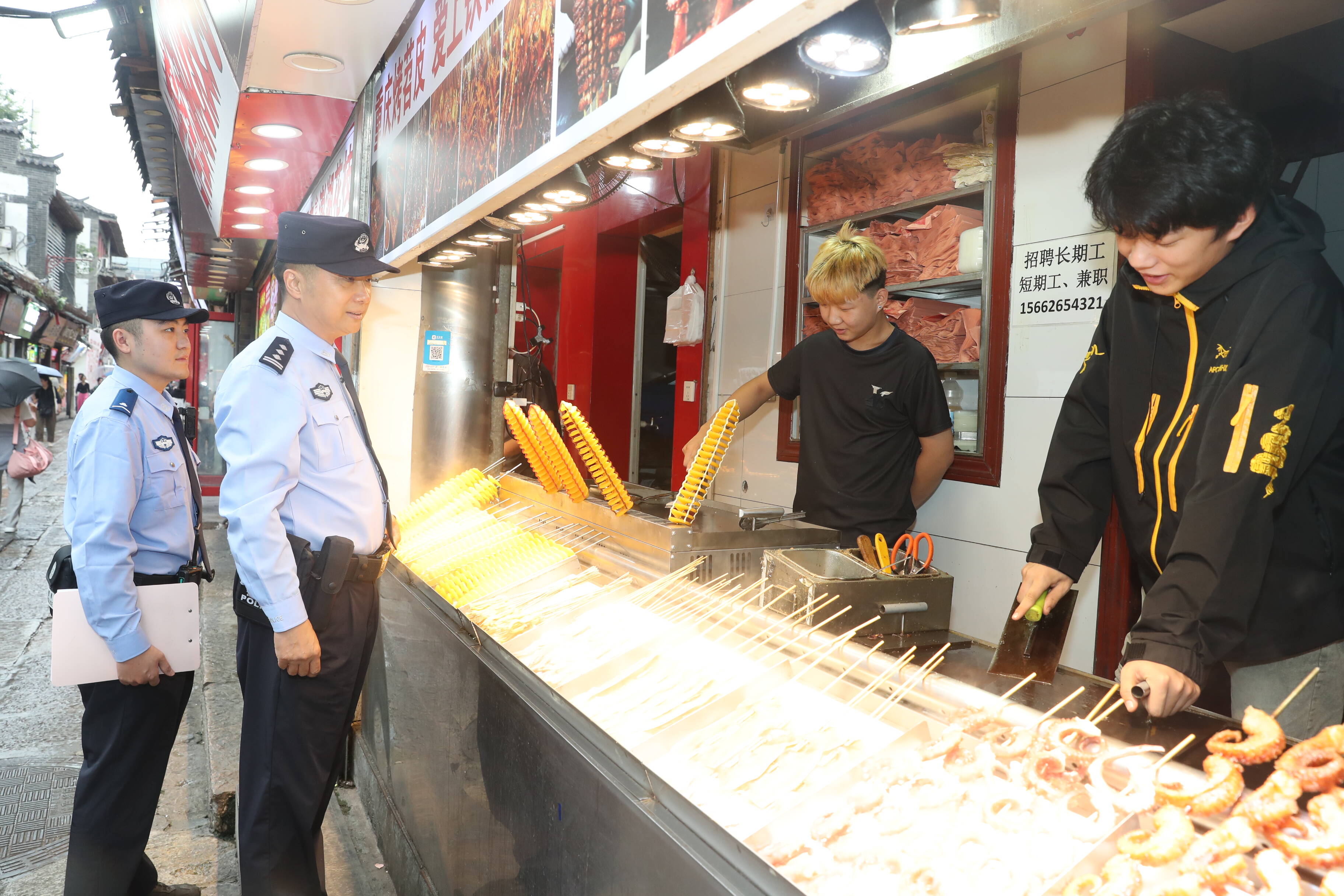 为凝聚共治合力,大明湖派出所依托街道办事处,组建“泉城平安联盟”,整合物业、商户、企业保安等力量。通过定期培训与上门指导,提升成员的安全意识和先期处置能力。联盟成员在日常工作中兼任信息员、宣传员、调解员,主动排查隐患、参与宣传调解,推动安全治理从公安单打独斗向社会协同转变,构建起“公安主导、商户参与、社会协同”的共治格局。